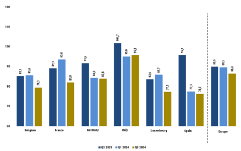 at the same level as the previous quarter. The index value of 89.5